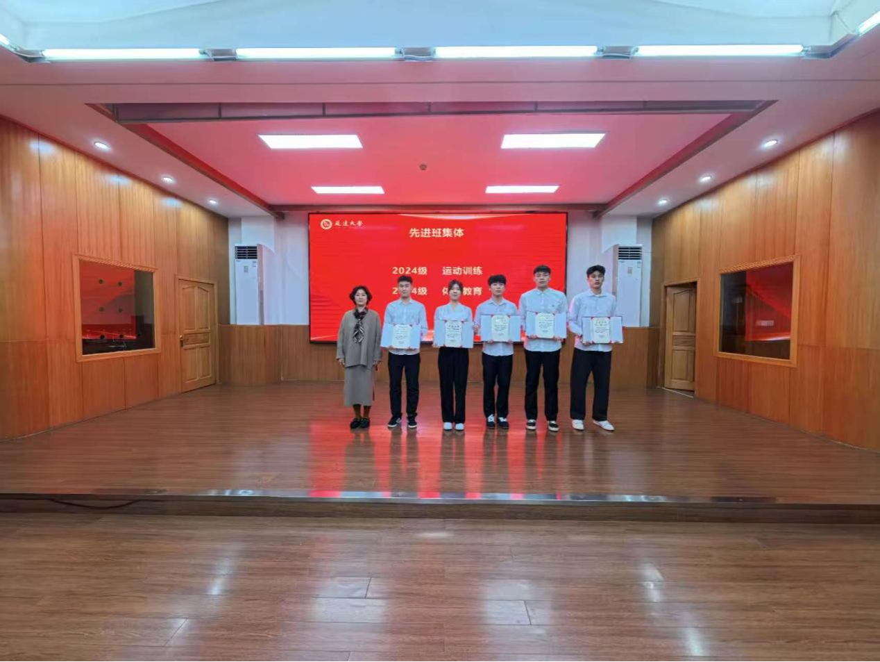 体育学院副院长金雄哲宣读《关于表彰体育学院研究生2024-2025学年度学生工作先进集体和先进个人的决定》副院长郑暘宣读《关于表彰体育学院本科生2024-2025学年度学生工作先进集体和先进个人决定》,20名同学获得“三好学生”称号、9人获得“优秀学生干部”称号、6人获得“优秀团干部”称号、10人获得“优秀团员”称号、10人获得“优秀寝室”称号、50人获得“特殊贡献奖”称号。与会领导为获奖代表颁发荣誉证书