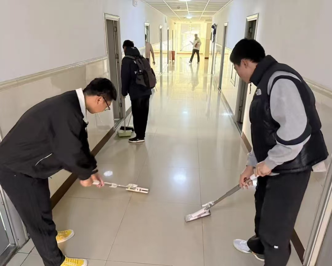 学院团委组织同学们开展寝室卫生清扫活动,同学们分工明确、协作默契。大家手持扫帚、抹布等工具,对公共区域及学生寝室的角落卫生进行彻底清理。整洁的寝室环境不仅为同学们营造了舒适的居住空间,更让奉献精神在细微之处彰显,展现了我院学子良好的精神风貌。